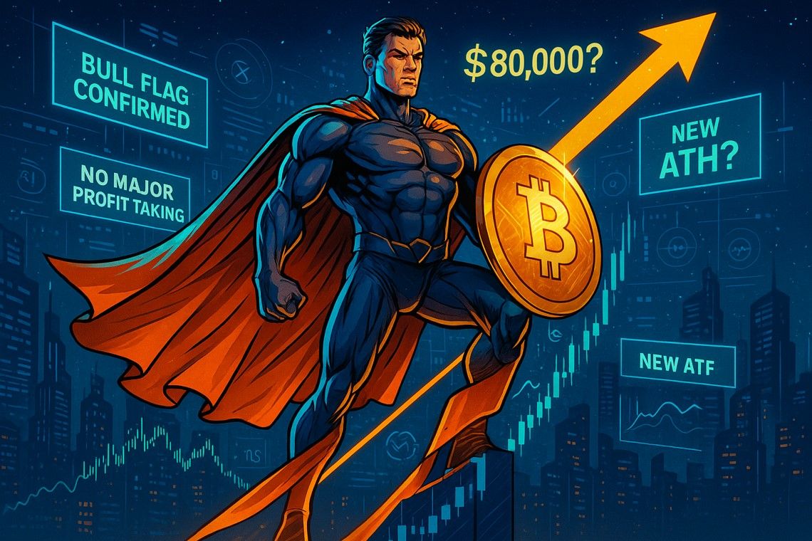 Bitcoin Siap Cetak Rekor Baru: Pola Bull Flag dan Profit Taking Minim Jadi Sinyal Reli Lanjutan