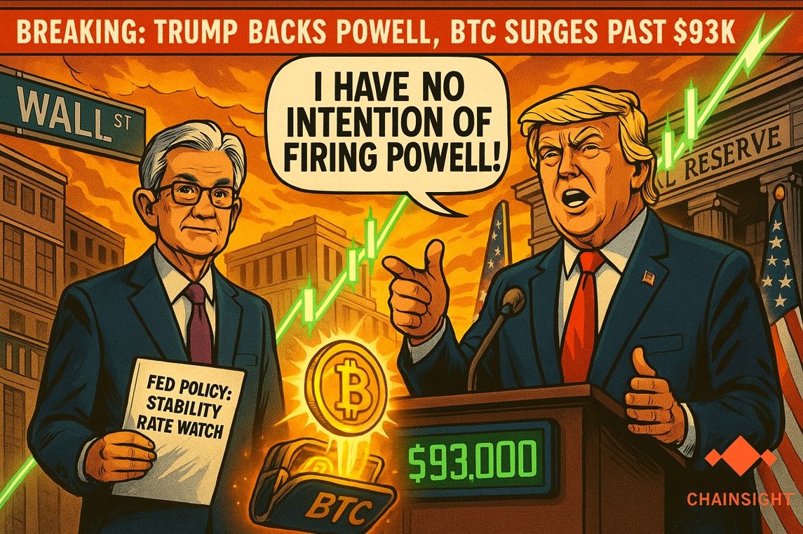 Harga Bitcoin (BTC) kembali menembus ambang $93.000 pada Rabu pagi, menyusul pernyataan Presiden AS Donald Trump yang menegaskan bahwa ia tidak memiliki niat untuk memberhentikan Jerome Powell dari posisinya sebagai Ketua Federal Reserve (The Fed).