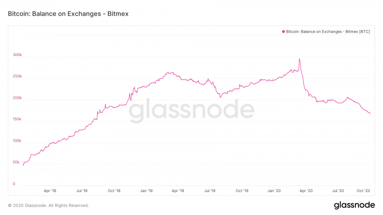 Cadangan Bitcoin BitMex. Sumber: Glassnode.