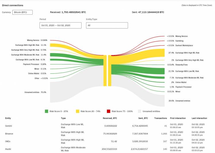 Menurut data dari Crystal Blockchain, dalam waktu kurang dari 48 jam, arus keluar bersih dari bursa telah melebihi 45.000 Bitcoin. Sementara itu, Gemini dan Binance tampaknya menjadi penerima manfaat terbesar dari arus keluar ini, diikuti oleh OKEx dan Huobi. Lebih dari 20.000 BTC telah ditransfer dari BitMEX ke empat bursa terakhir.