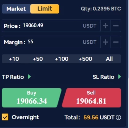 Tepat di bagian atas, Anda dapat melihat tombol Pasar dan Batas, dengan Pasar aktif, cukup masukkan jumlah yang diinginkan, dalam batas yang tersedia dan kontrak akan segera diperoleh posisi Long (beli) atau Short (jual) pada harga yang berjalan, dengan Limit, Anda akan dapat menetapkan di mana Anda akan memperoleh posisi kontrak tambahan yang akan diperoleh, baik itu Long (beli) atau Short (jual), yaitu, pesanan Anda akan menunggu nilai yang ditentukan dalam harga masing-masing untuk dijalankan.