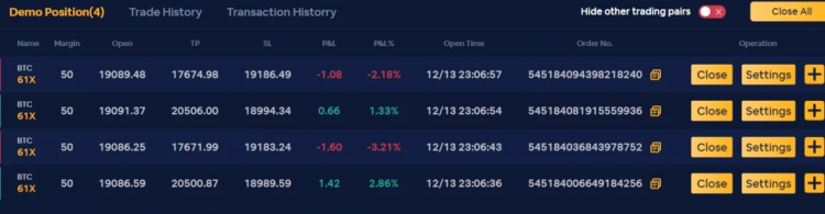 Bisa dilihat di atas ada tombol yang menutup sekaligus, dan kita harus ingat bahwa di bityard kita memiliki kelebihan yaitu kita tidak bekerja dengan CROSS atau ISOLATED, melainkan dengan INDIVIDU, dimana setiap eksekusi adalah posisi baru.