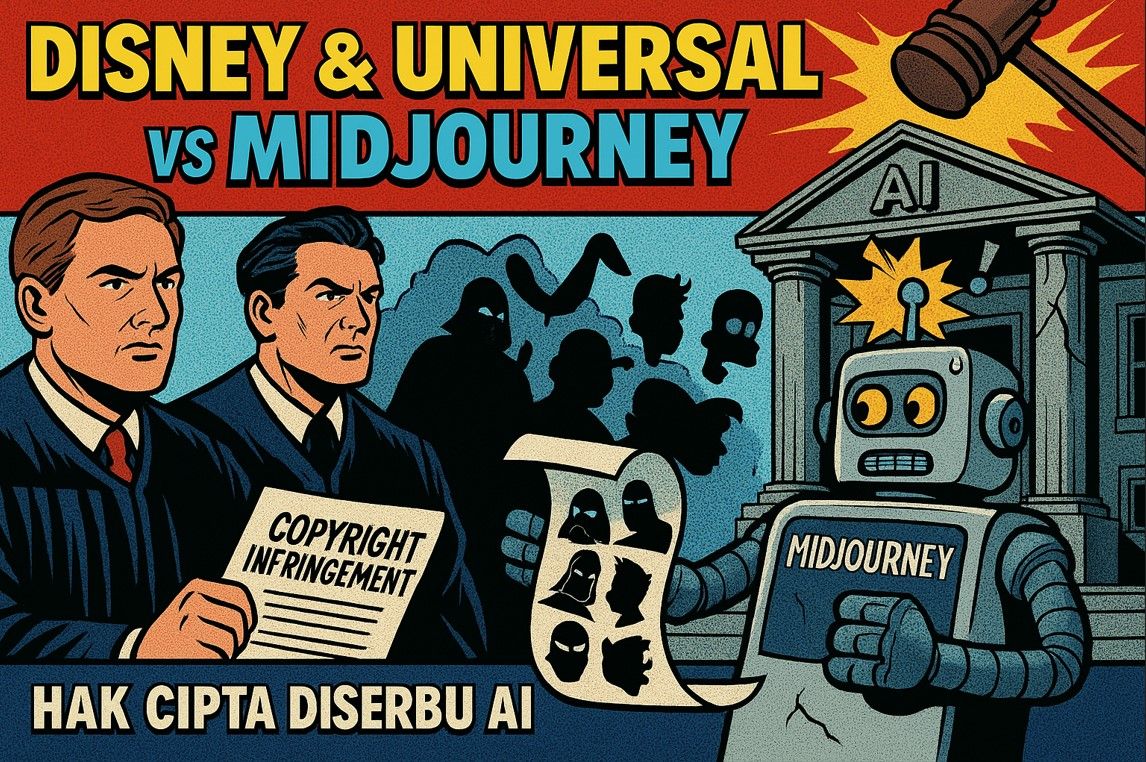 Dua raksasa industri hiburan global, Disney dan Universal, resmi menggugat perusahaan kecerdasan buatan Midjourney atas dugaan pelanggaran hak cipta. Gugatan ini menyoroti penggunaan karya berhak cipta milik studio-studio tersebut dalam pelatihan model AI Midjourney serta distribusi gambar karakter ikonik melalui layanan generator gambar milik perusahaan.