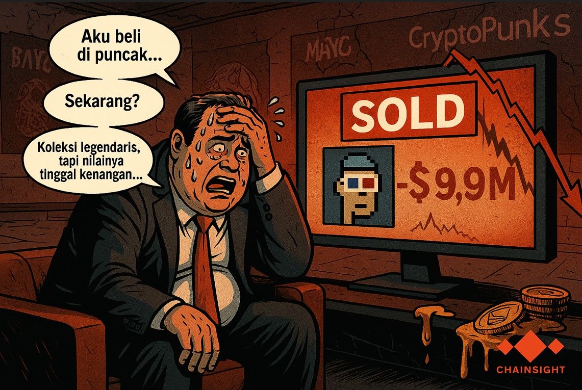Seorang investor menjual CryptoPunk NFT dengan kerugian realisasi hampir $10 juta, mencerminkan penurunan berkelanjutan di pasar NFT blue-chip yang dulu sempat booming.