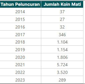 Berikut rincian jumlah aset kripto yang mati sejak tahun 2014