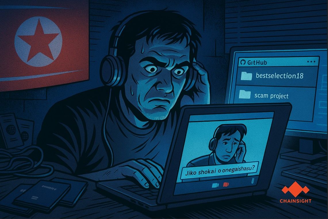 Ketika diminta memperkenalkan diri dalam bahasa Jepang, Motoki terlihat panik, lalu tiba-tiba melepas headset dan keluar dari wawancara. Layar yang dibagikannya juga memperlihatkan akses ke repositori GitHub pribadi bersama akun lain bernama bestselection18, yang dikenal sebagai infiltrator veteran dari Korea Utara.
