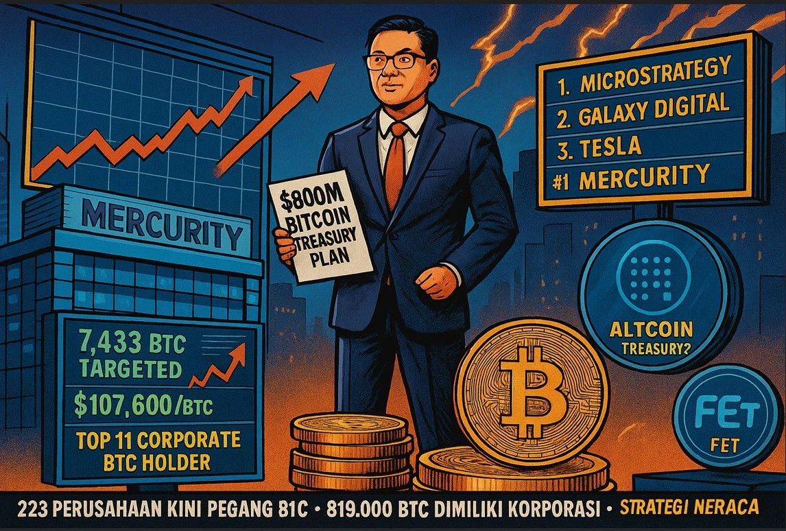 Mercurity Fintech Holding, perusahaan fintech digital berbasis blockchain yang terdaftar di Nasdaq, mengumumkan rencana penggalangan dana sebesar $800 juta untuk membentuk cadangan treasury Bitcoin jangka panjang. Langkah ini menjadi bagian dari tren korporasi global yang semakin banyak mengadopsi Bitcoin sebagai aset strategis.