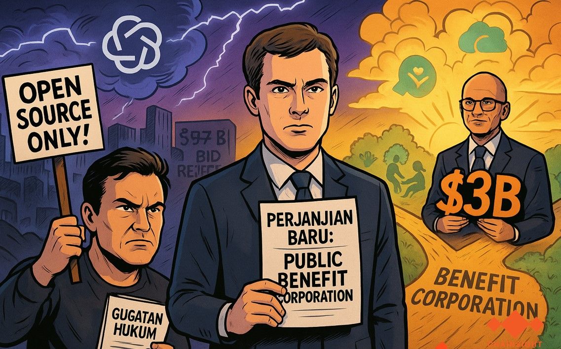 Baru-baru ini, pada 5 Mei, OpenAI mengumumkan bahwa mereka membatalkan rencana menjadi perusahaan profit sepenuhnya, dan memilih bertransformasi menjadi perusahaan benefit publik — struktur yang tetap mencari keuntungan namun dengan kewajiban hukum untuk menjalankan misi sosial dan publik. Kontrol utama tetap berada di bawah entitas nirlaba.