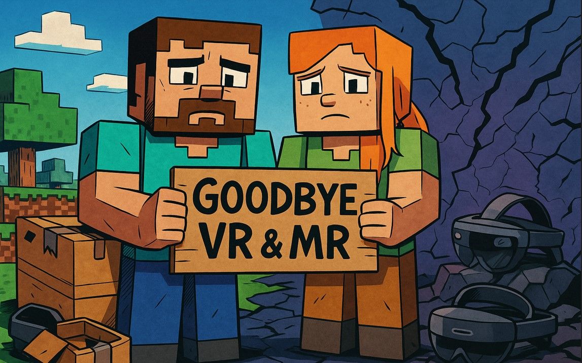 Mojang Studios resmi menghentikan dukungan untuk perangkat virtual reality (VR) dan mixed reality (MR) pada game Minecraft. Informasi ini dikonfirmasi dalam catatan pembaruan terbaru Minecraft edisi Bedrock versi 1.21.80 yang dirilis tanggal 6 Mei 2025. Namun pengumuman penghentian dukungan untuk VR/MR sudah disampaikan lebih awal, tepatnya pada Oktober 2024 lalu.