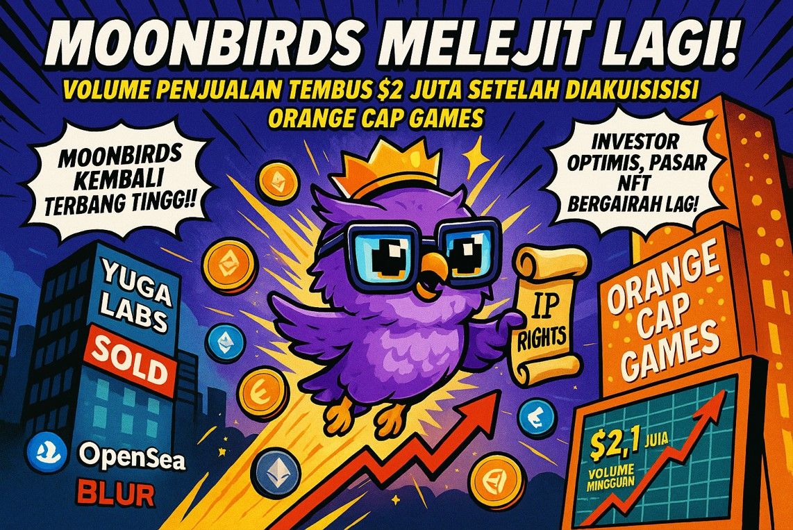 Koleksi non-fungible token (NFT) berbasis Ethereum, Moonbirds, mengalami peningkatan aktivitas pasar yang signifikan setelah hak kekayaan intelektual (intellectual property/IP) koleksi ini dijual kepada studio pengembang game blockchain Orange Cap Games.