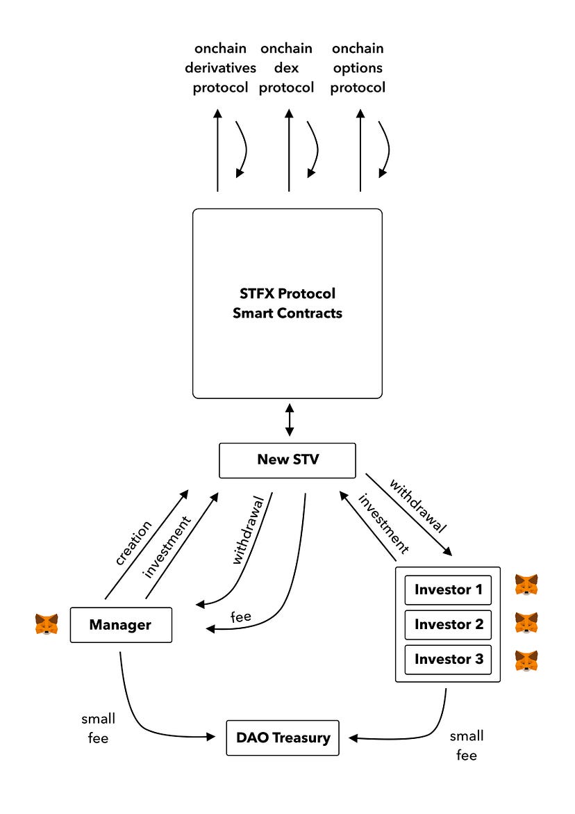 Di STFX, trader itu sendiri sebenarnya bukan trader, melainkan pembuat/manajer vault. Satu perdagangan adalah satu lemari besi. Seorang pengguna mengaturnya, mengatur apakah panjang atau pendek, mengatur entri, mengatur keluar, dan titik likuidasi. Siapa pun yang setuju dengan pandangannya dapat bergabung dalam perdagangan dalam sekejap. Kontrak pintar akan menyimpan dana selama perdagangan dan memastikan manajer hanya dapat melakukan apa yang diizinkan oleh kontrak pintar.