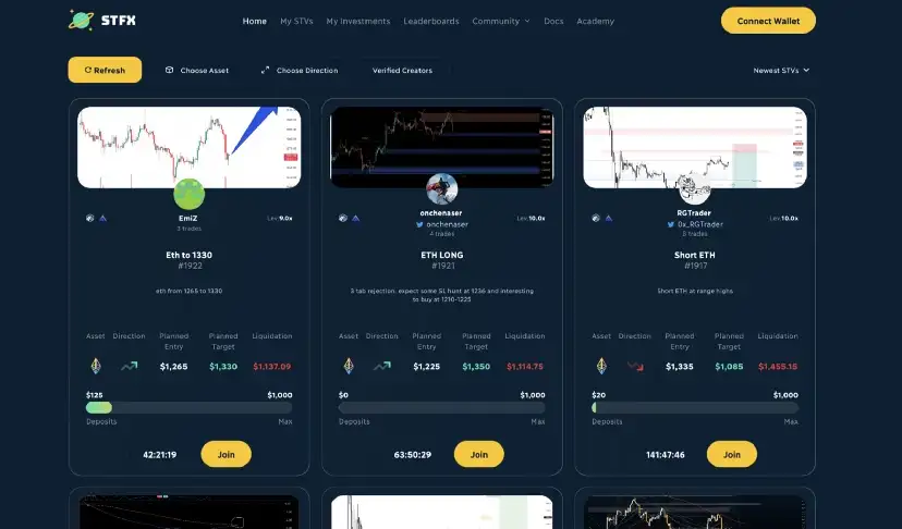 DApp yang menyenangkan secara keseluruhan. Papan peringkat menyenangkan untuk membangun reputasi — Kompetisi untuk melenturkan satu sama lain. Anda dapat bergabung hanya dengan $10. STFX berjalan di Arbitrum sehingga Anda tidak perlu khawatir dengan gas yang tinggi. Untuk melengkapi getaran degen, protokolnya juga masih di Alpha.