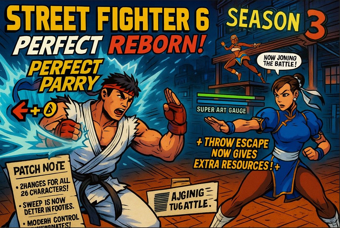 Capcom secara resmi merilis patch note untuk Street Fighter 6 Season 3, yang memperkenalkan sejumlah perubahan penting pada mekanik permainan dasar, terutama Perfect Parry dan Throw Escape. Perubahan ini dirancang untuk menciptakan gameplay yang lebih seimbang antara pemain agresif dan defensif.