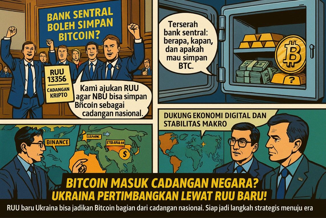 Parlemen Ukraina secara resmi menerima pengajuan RUU baru nomor 13356 pada Selasa lalu, yang memungkinkan Bank Sentral Ukraina (NBU) menyimpan aset kripto seperti Bitcoin sebagai bagian dari cadangan nasional, berdampingan dengan emas dan mata uang asing.
