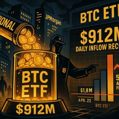 Aliran dana masuk ke ETF Bitcoin spot di AS mencapai $912 juta dalam satu hari, melampaui 500 kali lipat rata-rata harian tahun 2025....