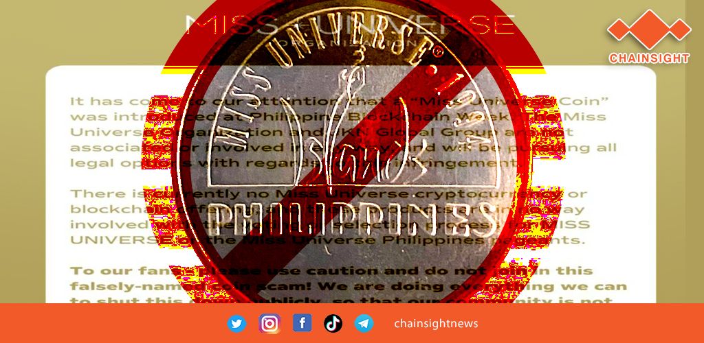 Awal bulan ini, sebuah proyek bernama Miss Universe Coin diumumkan di acara Philippine Blockchain Week (PBW). Aset kripto tersebut diperkenalkan langsung oleh pendiri PBW, Donald Lim, dan di dihadiri Miss Universe Filipina Michelle Dee, seolah meyakinkan bahwa proyek tersebut resmi milik penyelenggara kontes kecantikan dunia.
