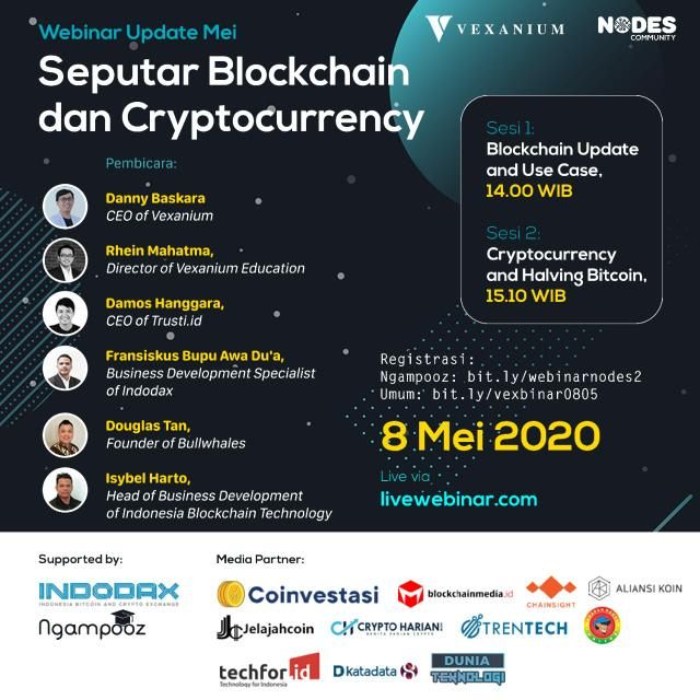 Jangan khawatir Sobat Digitalis karena pada tanggal 8 Mei 2020 nanti akan ada sebuah webinar yang berjudul “May Update of Blockchain and Cryptocurrency”. Seperti judul utamanya, tujuan diadakannya webinar ini adalah untuk memberikan update mengenai keadaan teknologi blockchain dan cryptocurrency saat ini. Selain itu, webinar ini diharapkan juga dapat menjadi ajang untuk memperkenalkan trend teknologi baru ini kepada masyarakat awam di Indonesia.
